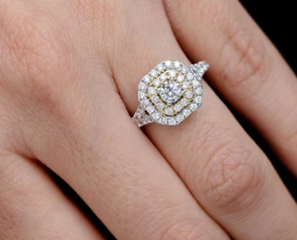 These GSDKings Double Halo Square Cluster Ring 14k Solid Rings are made of 14K Yellow gold. The diamonds are hand-set by a master diamond setter in the highest quality craftsmanship. This piece is made of solid gold.
