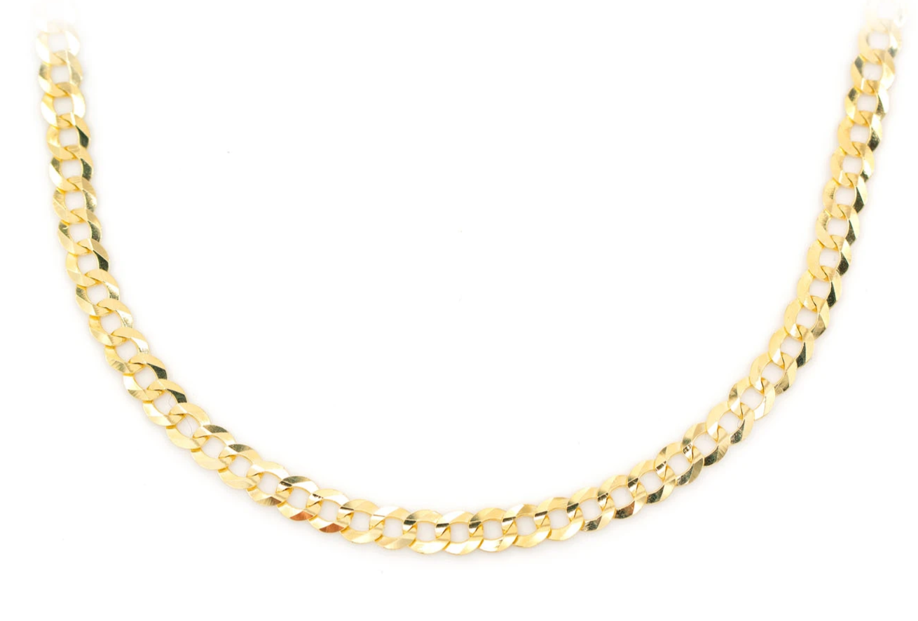 3.5MM Flat Curb Link 14k Solid Gold Chain