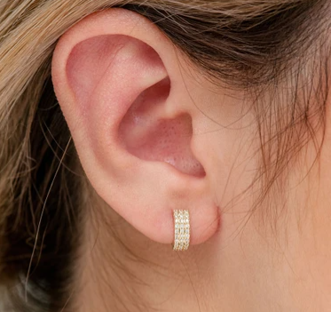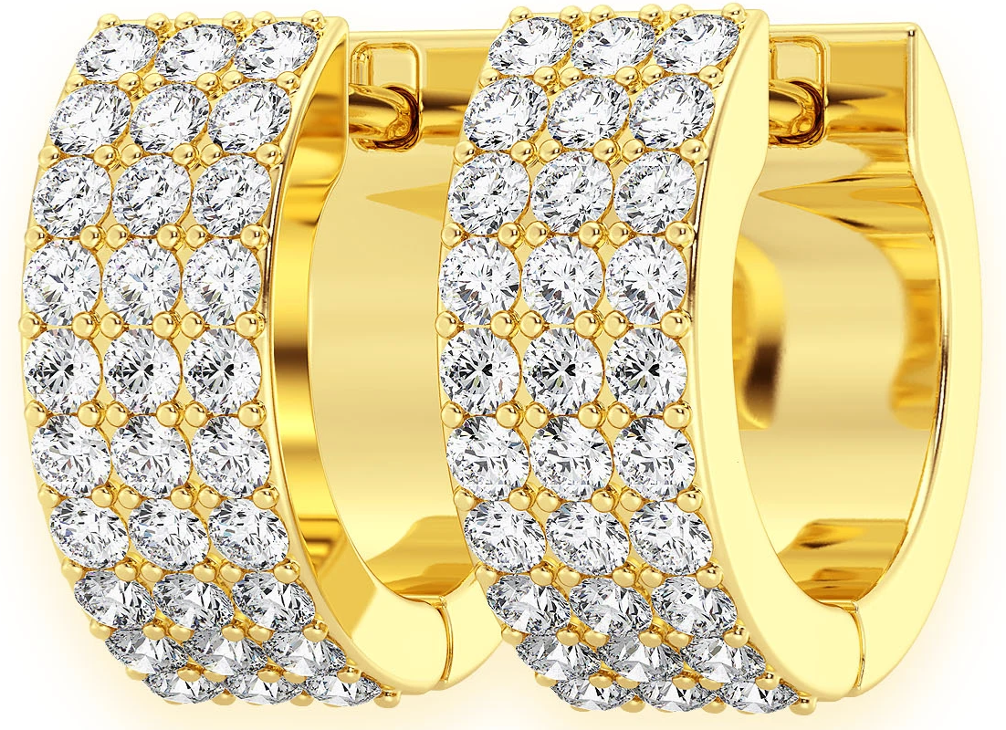 This GSDkings Small Three Row Huggie Hoop Earrings is made of 14K Yellow gold. The diamonds are hand-set by a master diamond setter in the highest quality craftsmanship. This piece is made of solid gold.