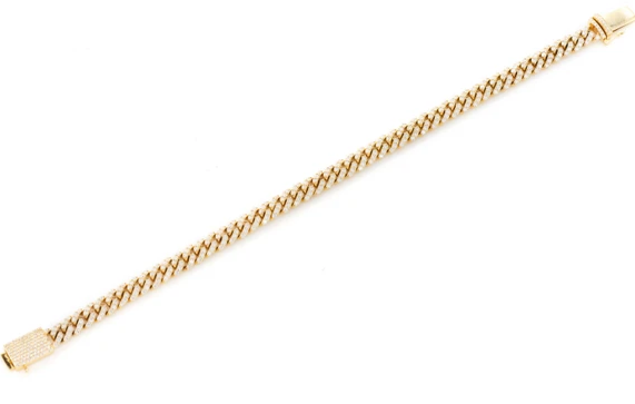This GSDKings 4mm Cuban Bracelet is made of 14K Yellow gold with 1.50ctw of diamonds. The diamonds are hand-set by a master diamond setter in the highest quality craftsmanship. This piece is made of solid gold.