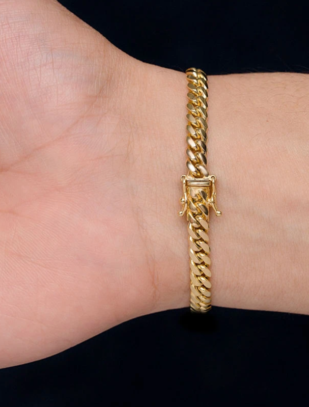This Icebox Miami Cuban Bracelet is made of solid 14K Yellow gold and is 5mm thick.
