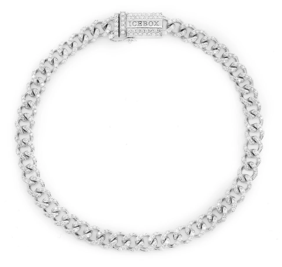 • To top it off, the box clasp reps your favorite jeweler, Icebox, with a logo engraved and diamonds all around.