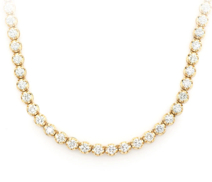 - Brimming with 9.75ctw of sparkle and shine, this necklace showcases hand-picked 6pt VS diamonds around the chain, ensuring a cohesive and vibrant look.