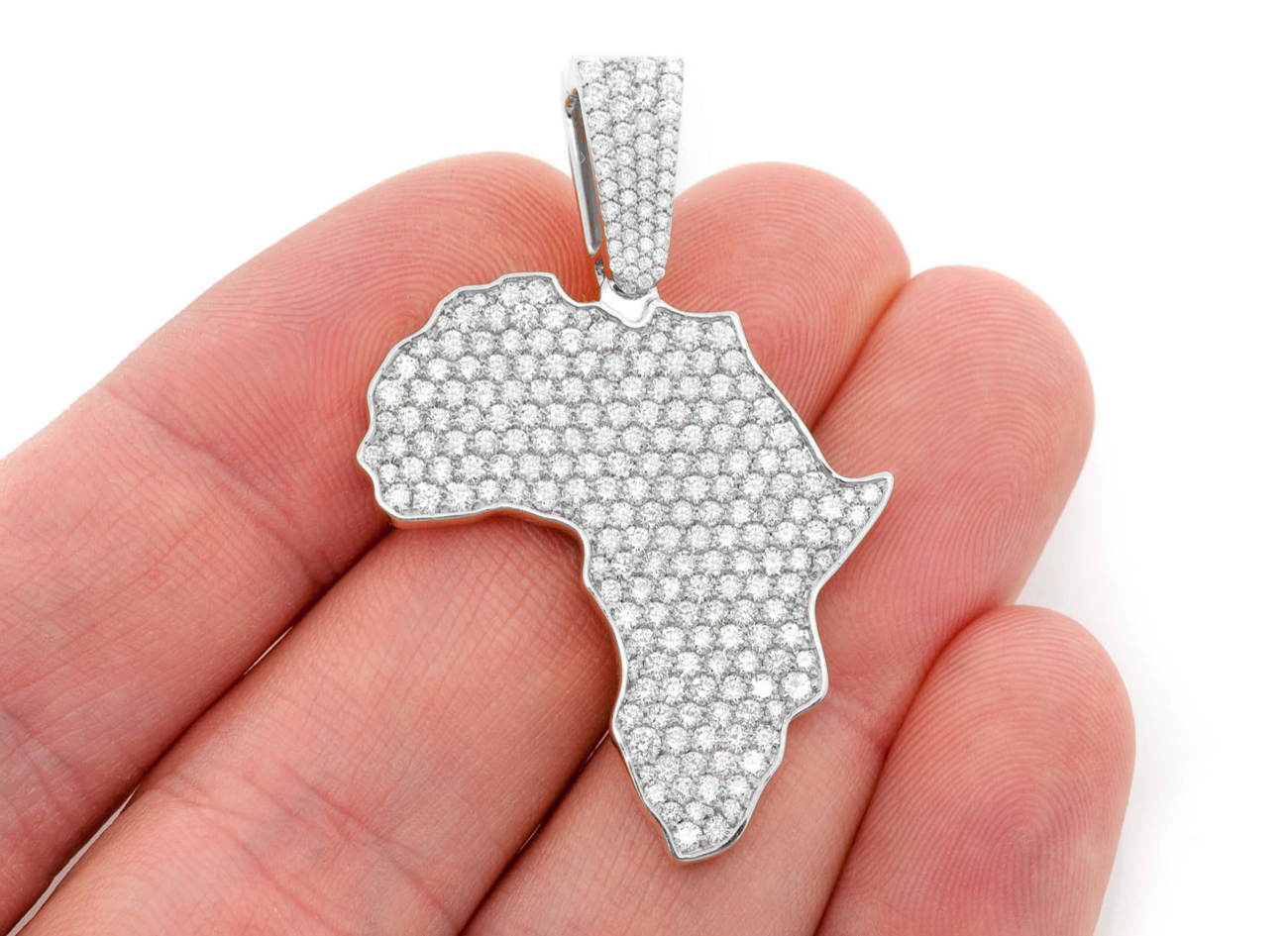 - Featuring a flawless design that mirrors the shape of Africa, this piece is adorned with 3.75ctw VS diamonds that dazzle from every angle.