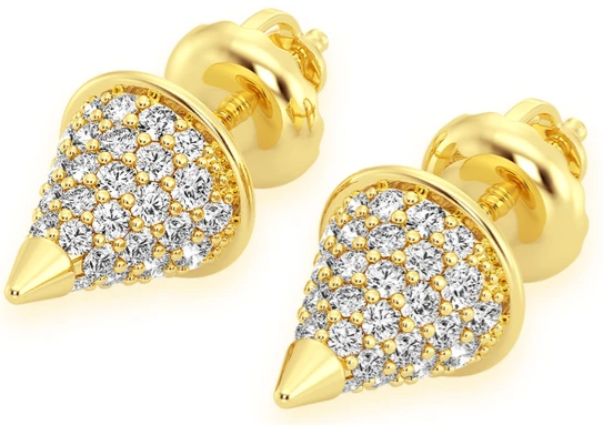 These GSDKings Bullet Point Stud earrings are made of 14K Yellow gold.  The diamonds are hand-set by a master diamond setter in the highest quality craftsmanship. This piece is made of solid gold.