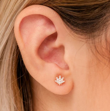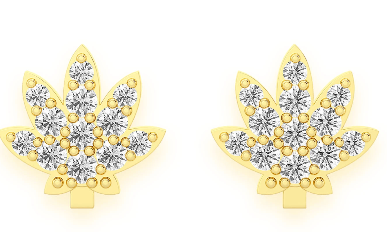 Cannabis Leaf Stud Diamond Earrings 14k Solid Gold 0.10ctw