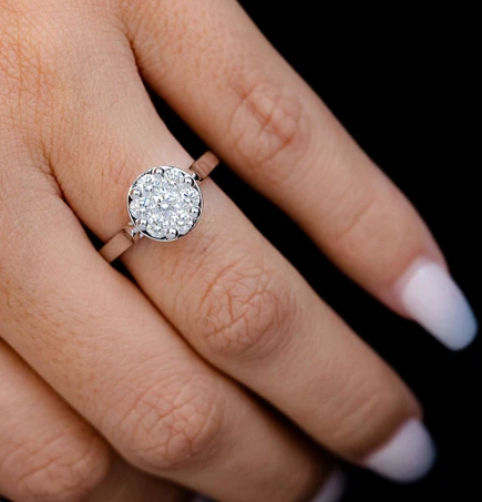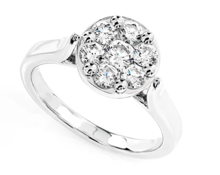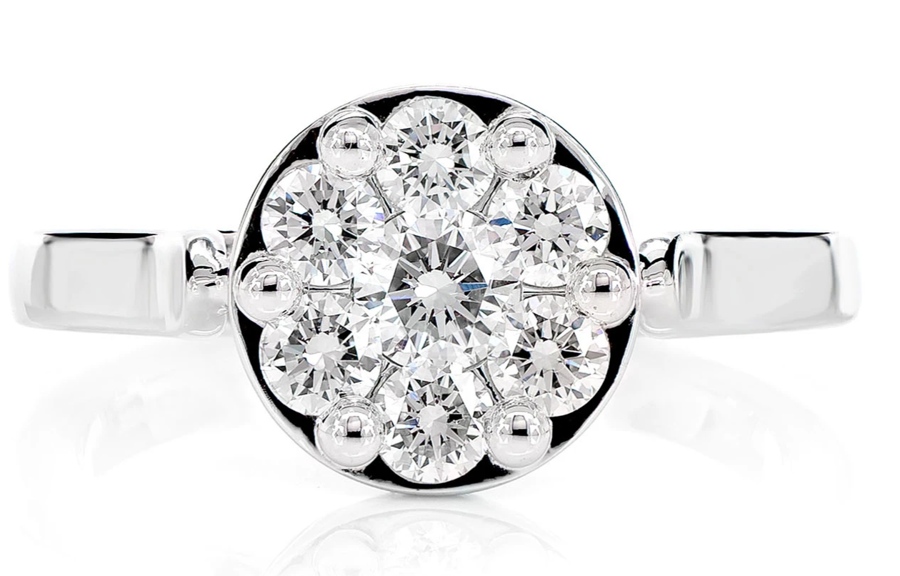 Cathedral Round Cluster Diamond Engagement Ring 14 Solid Gold – 0.75ctw