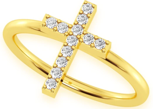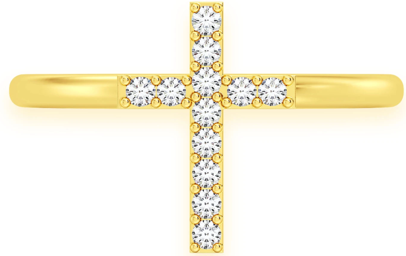 Cross Diamond Ring 14k Solid Gold 0.10ctw