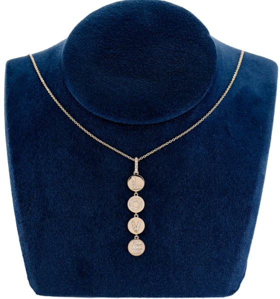 Diamond Vertical Love Disc Pendant Necklace Attached 14k Solid Gold 0.25ctw