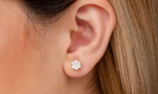 • The pair features 0.75ctw VS quality diamonds artfully arranged into the shape of a flower.