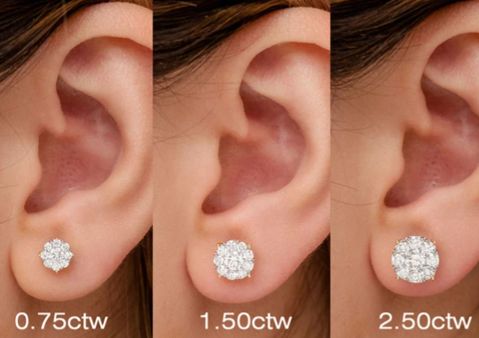 - Opulence and sparkle come together in this pair of cluster diamond stud earrings.