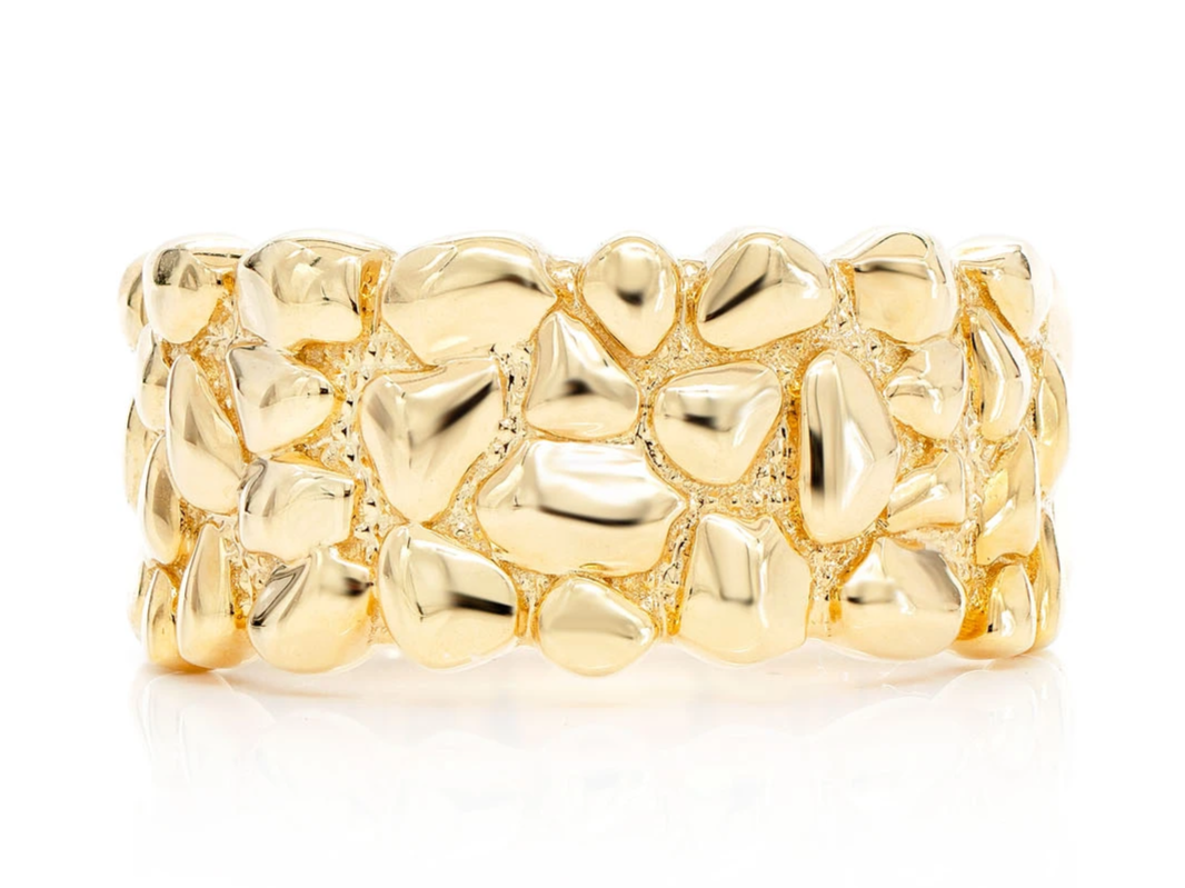 This GSDKings Nugget Band Ring is made of 14K Yellow gold.