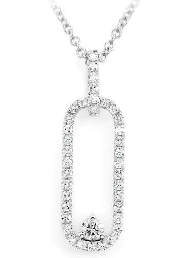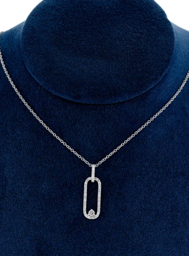 - Featuring an oval diamond frame with a solitaire diamond at the bottom, all eyes will be on the unique sparkle of your necklace.