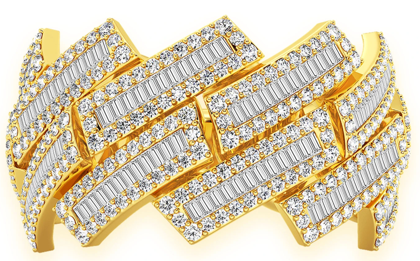 These GSDKings Raised Baguette Cuban Ring 14k Solid Rings are made of 14K Yellow gold. The diamonds are hand-set by a master diamond setter in the highest quality craftsmanship. This piece is made of solid gold.
