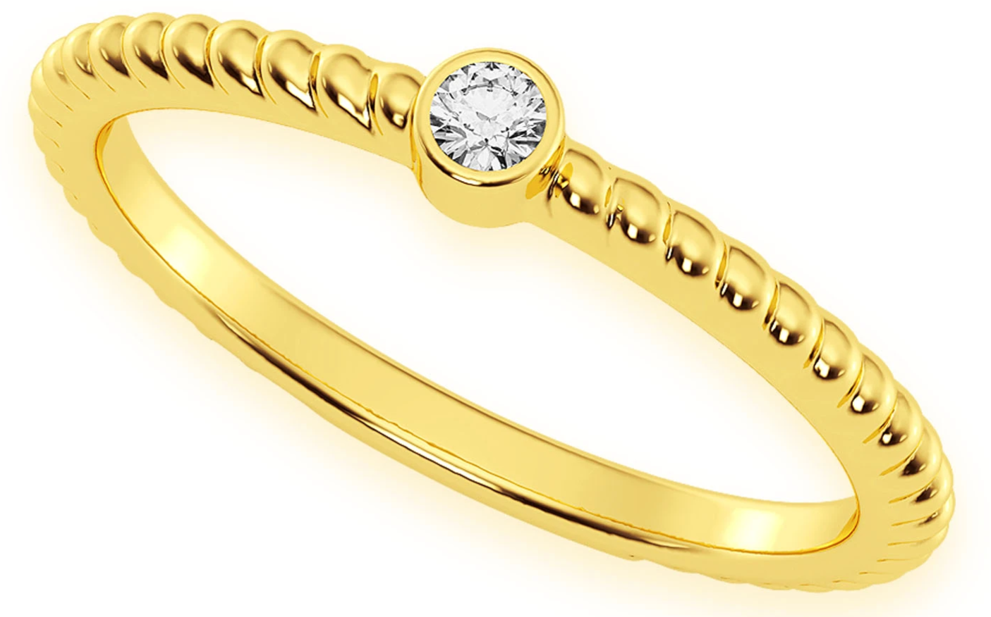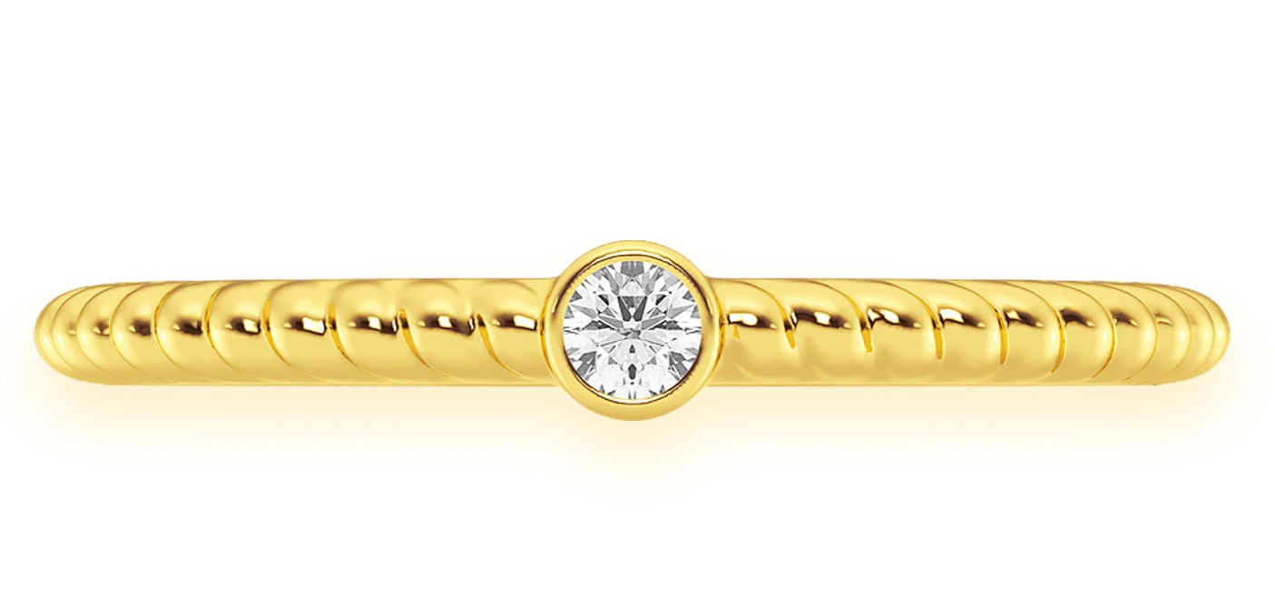 - Simple, delicate, and unmistakably beautiful, this small gold band ring features a solitaire round 0.05ct bezel set diamond in the center.