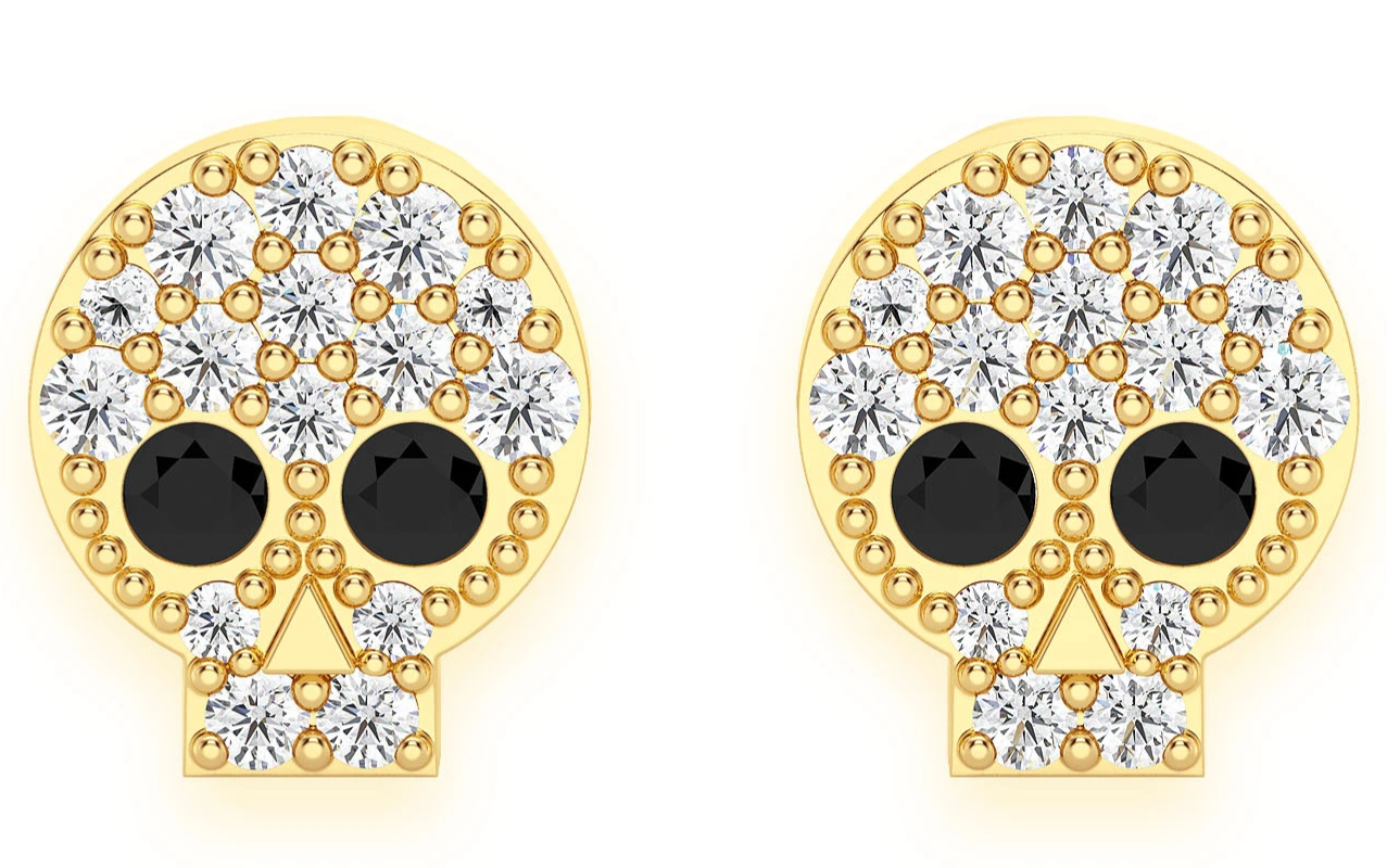 - Adorned in 0.25ctw VS diamonds, these simple skull studs dazzle with genuine black diamond eyes.